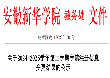 关于2024-2025学年第二学期学籍注册信息变更结果的公示