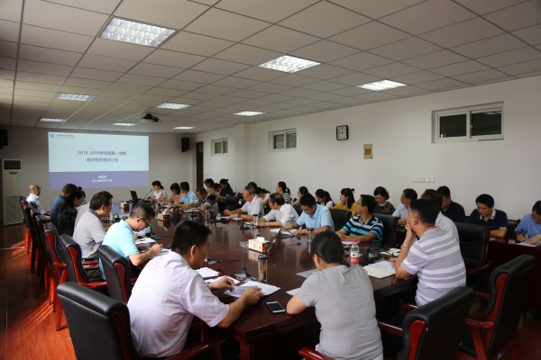 教务处处长助理刘冬艳从本学期教学工作整体情况、期初检查方式与内容、存在的问题以及整改意见等四个方面汇报了2018-2019学年第一学期教学检查情况。教学质量监控办公室主任李志远对上学期开展的三个专项检查工作情况进行通报,并对教学质量监控工作简报编制及发放情况、编印教学质量监控资料汇编情况进行了具体说明。学生处处长汪俊东围绕2019届毕业生,从就业市场工作、暂离校工作、加强毕业生安全教育管理工作等三个方面进行了汇报。教务处处长黄仿伦就2019届本科毕业论文(设计)、2019年度实验室建设、第十一批学士学位授权评审等二十六项近期教学工作进行了汇报和布置。