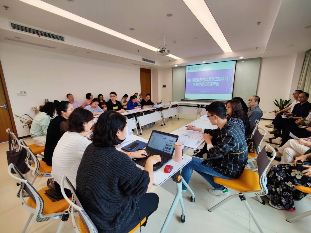 本网讯(通讯员:江海容)5月13日下午,我校2021年度省级质量工程课程类及校级质量工程项目检查验收汇报评审会在科研办公楼召开。会议共设两个评审组,文科组于508会议室进行,由教务处蔡冬梅副处长主持,理工组于201会议室进行,由电子工程学院/智能制造学院汪青副院长主持,每组各有五位专家参与评审。